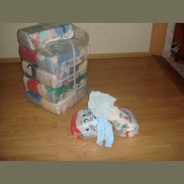 Practic, aceste lavete sunt bucati de dimensiuni aproximativ 50/40 cm (+/- 10 cm), mai mici sau mai mari, provenite din material tip prosop, bumbac 100%, reciclat, presate si ambalate in pachete a 2 kg/pachet;un bax are 10 pachete (20 kg/bax).